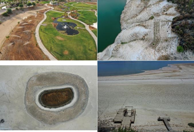 Siêu hạn hán lịch sử ở California. Nhiều khu vực tại bang California, Mỹ những năm gần đây đã gặp phải tình trạng hạn hán nghiêm trọng do ảnh hưởng của biến đổi khí hậu.