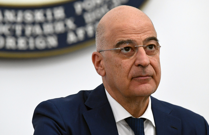 Ngoại trưởng Hy Lạp Nikos Dendias tại cuộc họp báo ở Bosnia và Herzegovina hồi tháng 5. Ảnh: AFP.