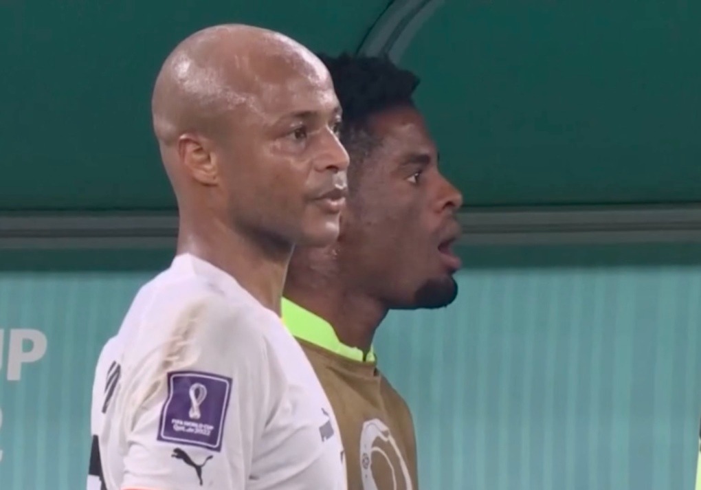 Trước tình huống này, các camera cũng bắt được một khoảnh khắc thú vị khác của thủ quân đội tuyển Ghana Andre Ayew. Phút 77, khi tỷ số là 1-1, Andre Ayew rời sân, và trong khi anh đang tay bắt mặt mừng với đồng đội, Bồ Đào Nha ghi bàn nâng tỷ số lên 2-1 nhờ công Joao Felix.