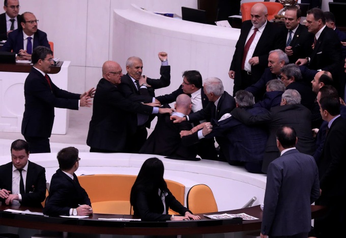 Cuộc ẩu đả trong quốc hội Thổ Nhĩ Kỳ (Ảnh: AP).