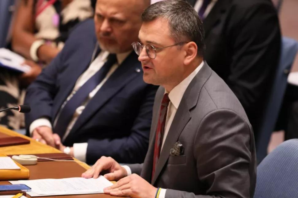 Ngoại trưởng Ukraine Dmytro Kuleba phát biểu tại một cuộc họp của Hội đồng Bảo an Liên Hợp Quốc. Ảnh: Getty