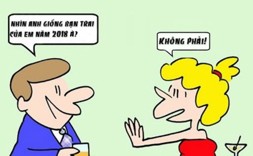 Trong bữa tiệc đêm giao thừa, một chàng trai muốn làm quen với cô gái xinh xắn ở bàn tiệc đối diện.