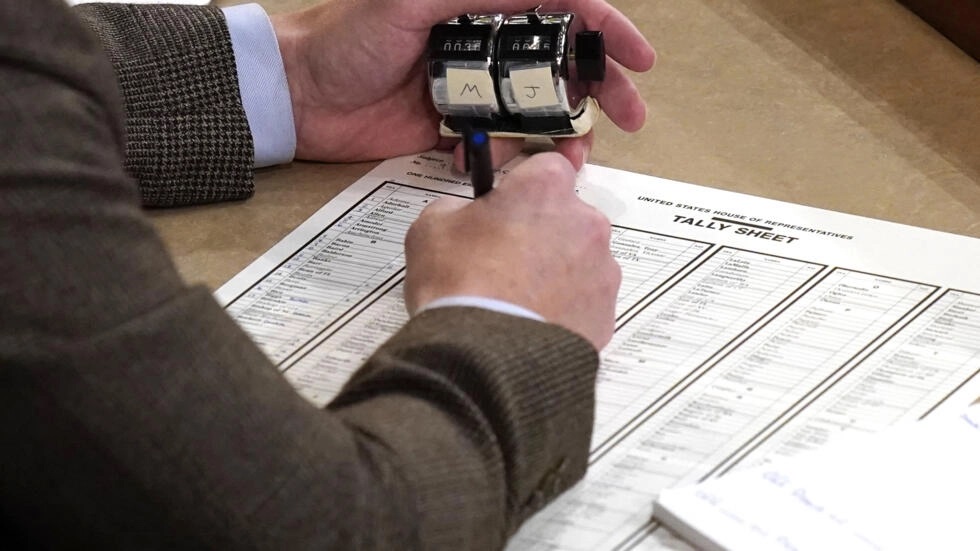 Kiểm phiếu vòng thứ 7 trong ngày bỏ phiếu thứ 3 để bầu ra chủ tịch Hạ Viện Mỹ, hiện do đảng Cộng Hòa chiếm đa số, ngày 05/01/2023. AP - Alex Brandon