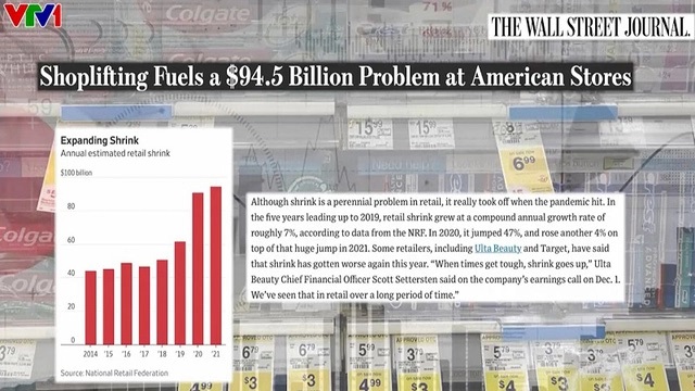 Tờ Tạp chí phố Wall dẫn ước tính của Liên đoàn bán lẻ quốc gia Mỹ cho thấy mức hao hụt hàng hóa chiếm khoảng 1,4% doanh thu bán lẻ năm 2021, tương đương 94,5 tỷ USD, phần lớn là do bị ăn cắp.