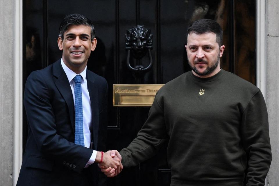 Tổng thống Ukraine Zelensky bắt tay Thủ tướng Anh Rishi Sunak. Ảnh IT