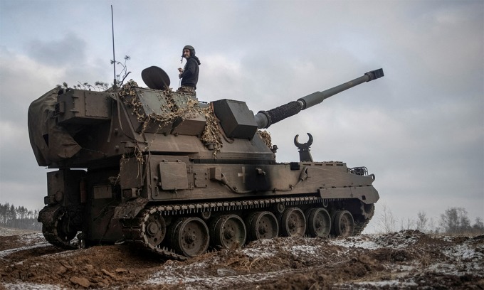 Pháo tự hành AHS Krab Ukraine trên tiền tuyến ở tỉnh Donetsk ngày 17/1. Ảnh: Reuters.