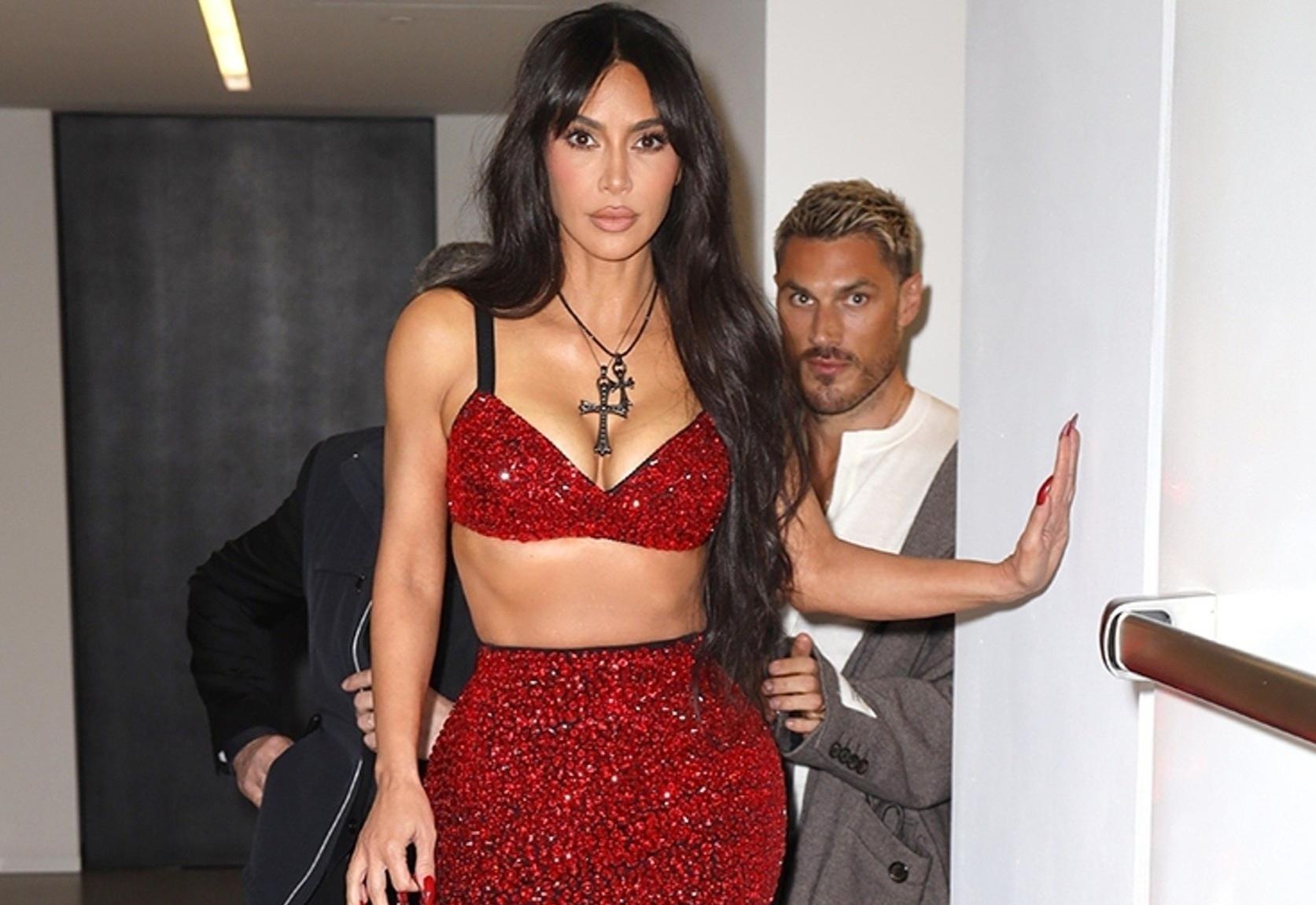 Tham dự Tuần lễ thời trang Milan vào tháng 2/2023, Kim Kardashian không thể bước đi bình thường khi lên cầu thang vì váy bó. Cô phải bám vào tay vịn, nỗ lực bước đi để không dẫm lên tà váy.