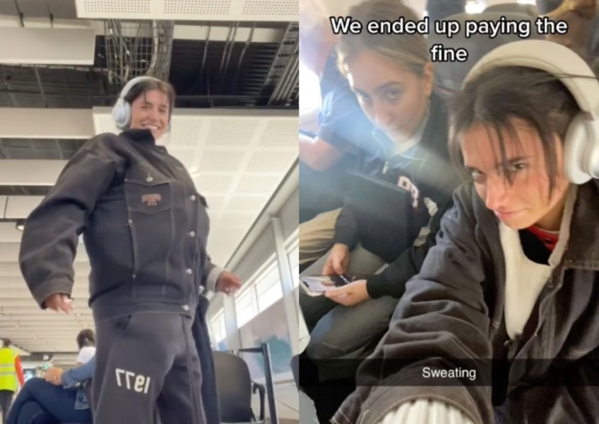 Hai cô gái Australia chia sẻ clip mặc nhiều quần áo để tránh trả thêm phí hành lý.
