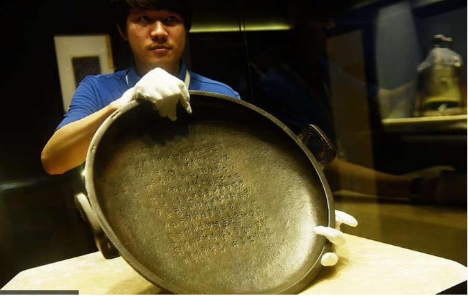 Bảo vật có tên gọi là Hề Giáp bàn (hay chiếc khay Hề Giáp) chính là một minh chứng. Đây là một chiếc khay bằng đồng được chế tác vào năm 823 TCN, dưới thời Tây Chu (1046 TCN – 771 TCN). Theo các chuyên gia khảo cổ, chiếc khay này cao 11,7 cm, rộng tới 47 cm, với tay cầm ở hai bên. Đặc biệt, trên khay có khắc hơn 130 chữ để lưu lại một sự kiện lịch sử nổi tiếng vào thời nhà Tây Chu.