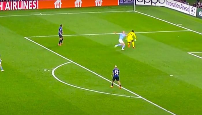Onana vượt qua Haaland và buộc tiền đạo này phải phạm lỗi.