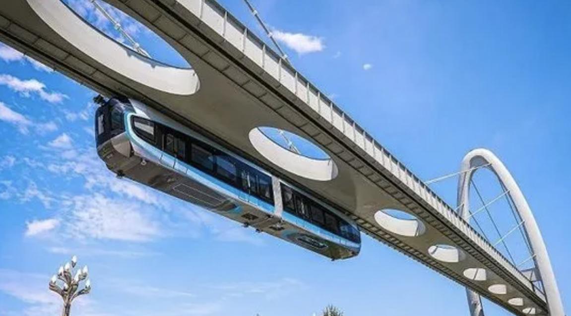 Trong hình bên dưới là chuyến tàu đường sắt "trên không" (còn gọi là tàu hỏa hàng không) đầu tiên của Trung Quốc bắt đầu hoạt động vào thứ Ba (26/9/2023) ở Vũ Hán, tỉnh Hồ Bắc Trung Quốc.