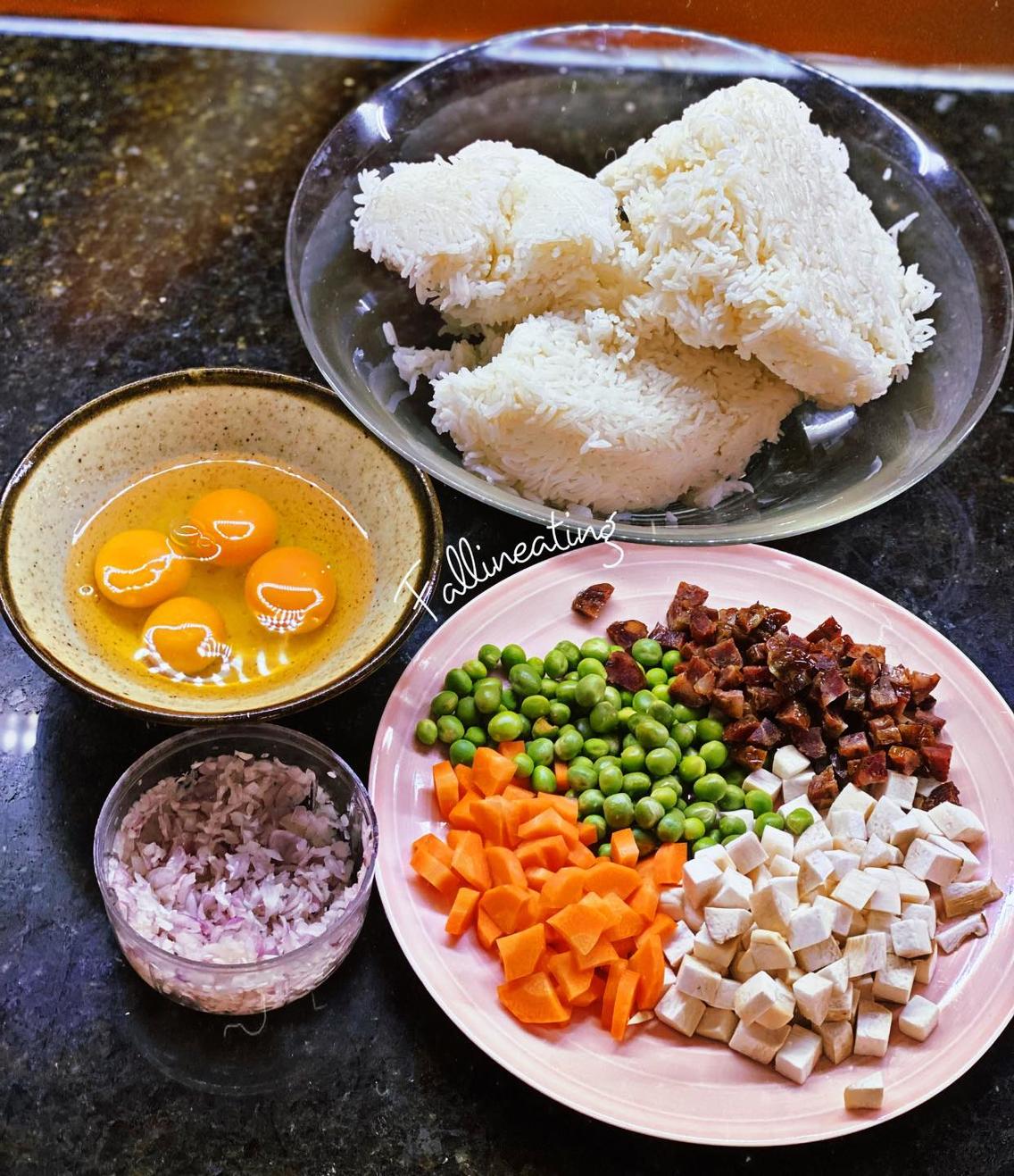 Nếu chiên cùng rau củ phải chần qua, nếu chiên cùng hải sản thì phải đảo hải sản trước mới cho vào cơm.
