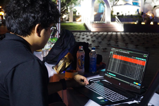 "Toàn bộ 2.024 drone được điều khiển tự động bằng máy tính. Bài trình diễn được lập trình từ trước, truyền tải vào từng thiết bị bay. Khi cất cánh, từng thiết bị cũng phối hợp với nhau để tạo nên màn trình diễn", ông Nguyễn Minh Thắng, đại diện đơn vị thực hiện lễ hội ánh sáng đêm giao thừa, cho biết.