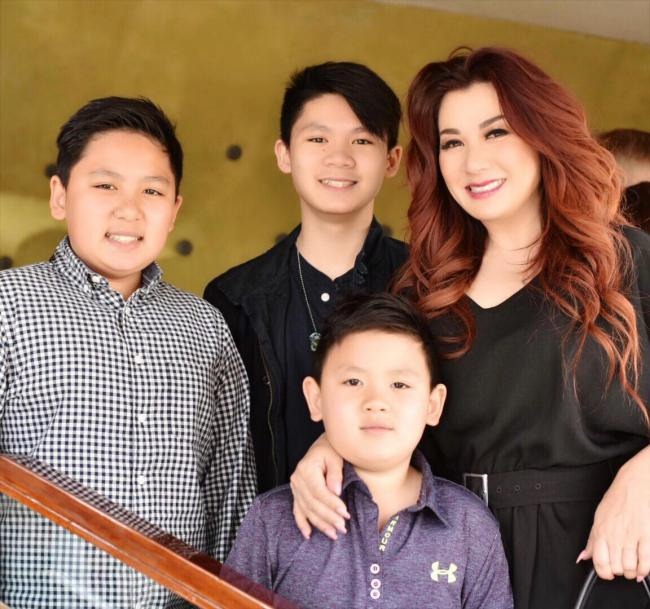 - Beckam, Colin và Kenzi đều hiểu chuyện. Từ nhỏ, tôi vẫn giữ một số nền nếp của người Việt: Không bao giờ được cãi lời ông bà, bố mẹ, anh em phải có trật tự. Các con sống ở Mỹ nhưng khá lành, đều chưa có bạn gái. Anh cả Beckam, 21 tuổi, đang học trường nhạc. Con rất thương mẹ, không bao giờ tiêu xài hoang phí. Có hôm, con phải bắt xe công nghệ về nhà, con nhất quyết chờ vài tiếng để giá xe hạ, tiết kiệm cho mẹ. Năm ngoái, khi tôi được mời tham gia một đêm nhạc New Wave, hát cùng nhiều thần tượng của mình một thời. Thấy mẹ không có bài để biểu diễn, con viết tặng ca khúc Time To Shine, khiến tôi xúc động khóc.