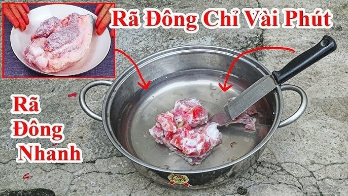 Thay nước mỗi 30 phút để duy trì nhiệt độ lạnh, giúp thịt rã đông nhanh và an toàn.