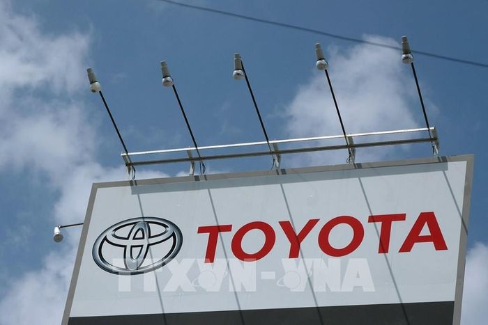 Biểu tượng hãng Toyota tại cửa hàng ở Tokyo, Nhật Bản. Ảnh: AFP/TTXVN