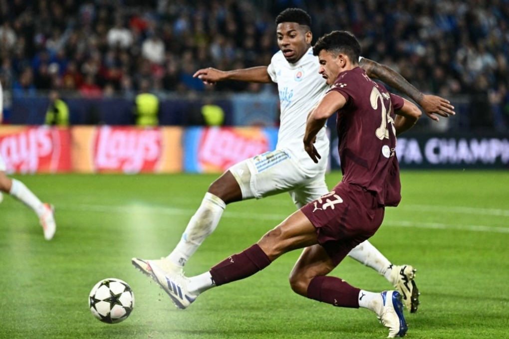 Nunes (áo sẫm màu) thi đấu trong trận Slovan Bratislava 0-4 Man City tối 1/10. Ảnh: AFP