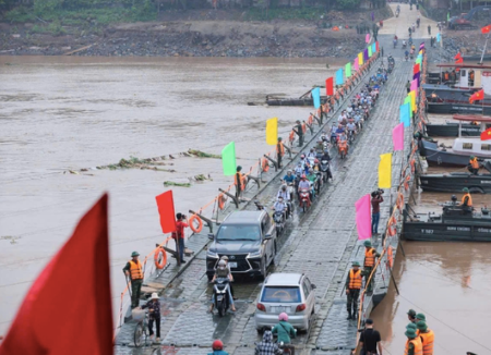 Tuy nhiên, khi tối ngày 1-10 do nước lũ ở thượng nguồn đang đổ về khiến mực nước sông Hồng dâng cao, dòng chảy lớn, Lữ đoàn 249 đã quyết định tạm thời 'cắt' cầu phao Phong Châu. Trước tình hình nêu trên, lực lượng quân đội đã tổ chức phà thay thế khi cầu phao khi nước sông Hồng chảy xiết. Đến ngày 6-10, cầu phao được nối lại, hoạt động cho tới sáng nay.