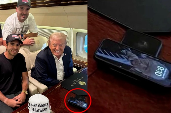 Bức ảnh chụp cùng Donald Trump được nhóm YouTuber Nelk Boys đăng trên diễn đàn Reddit ngày 22/10 cho thấy ứng viên tổng thống Mỹ đang dùng iPhone cài hình nền của chính ông. Bức ảnh bị xóa sau vài tiếng đăng tải.