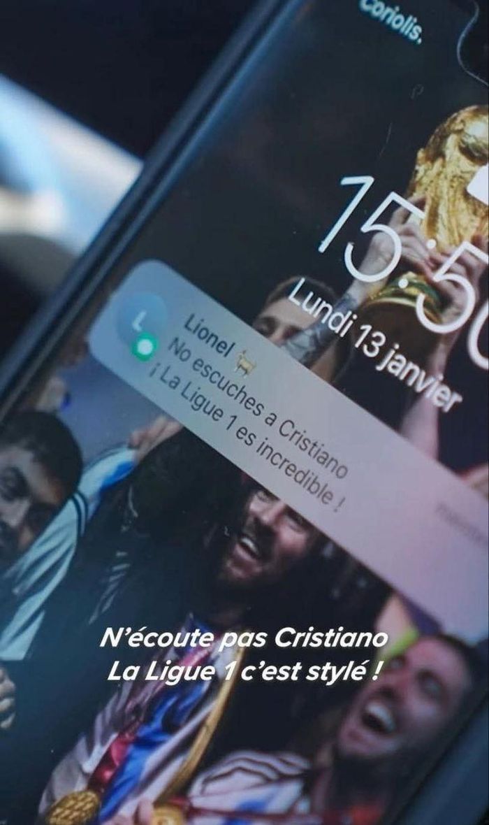 Trước đó, tài khoản mạng xã hội của Ligue 1 cũng đáp trả CR7 bằng hình ảnh Messi đang cầm chiếc Cúp Thế giới, kèm dòng chữ: “Leo Messi thi đấu dưới trời 38 độ" (ám chỉ Messi vô địch World Cup tại Qatar 2022).