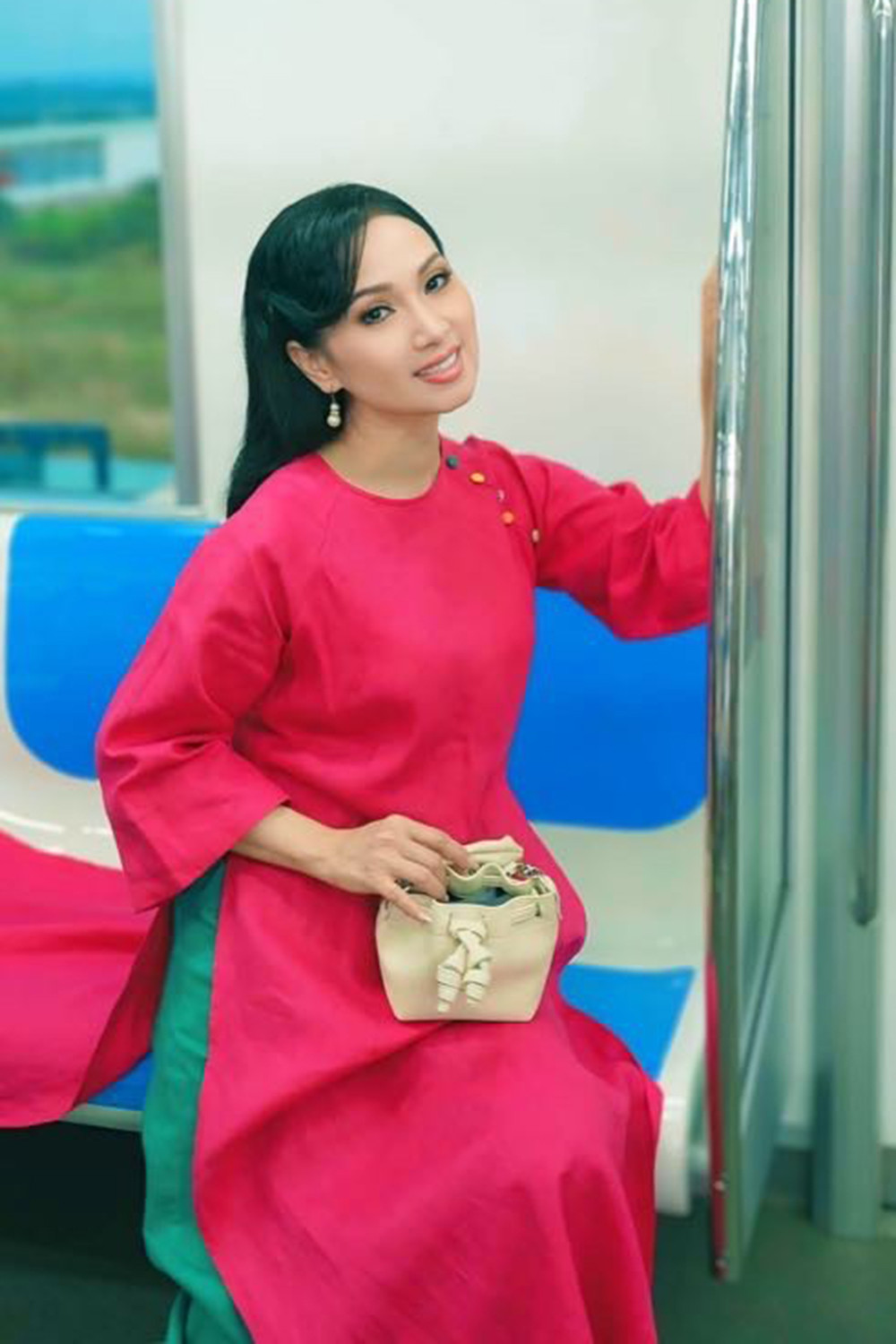 "Ca sĩ tỷ phú" Hà Phương cùng Trần Sang và Thái San thực hiện bộ ảnh áo dài retro tại tuyến metro số 1 TPHCM nhân dịp Tết Ất Tỵ 2025.