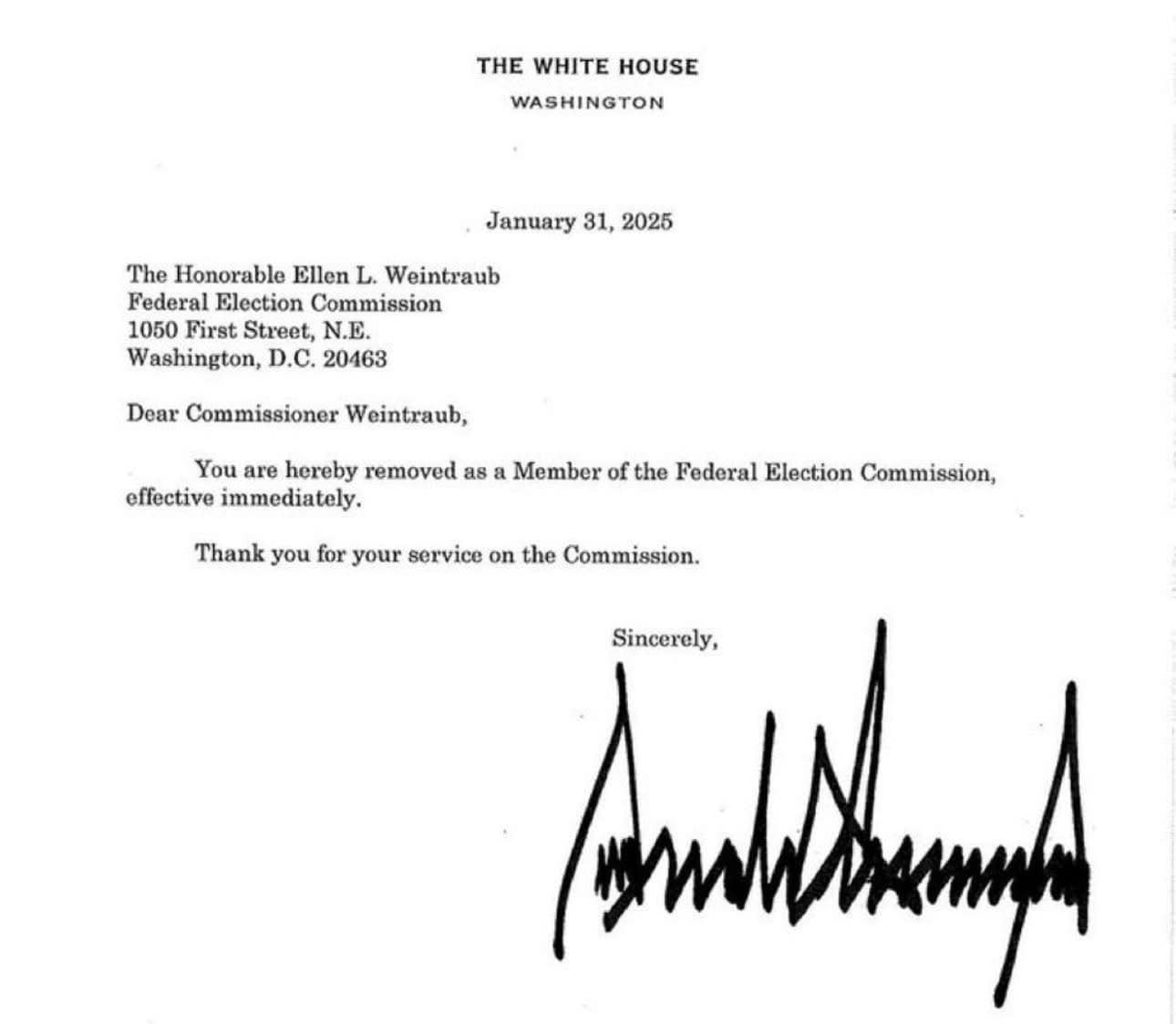 Tổng thống Trump ký lệnh sa thải Chủ tịch Ủy ban bầu cử Ellen Weintraub (dân chủ ).