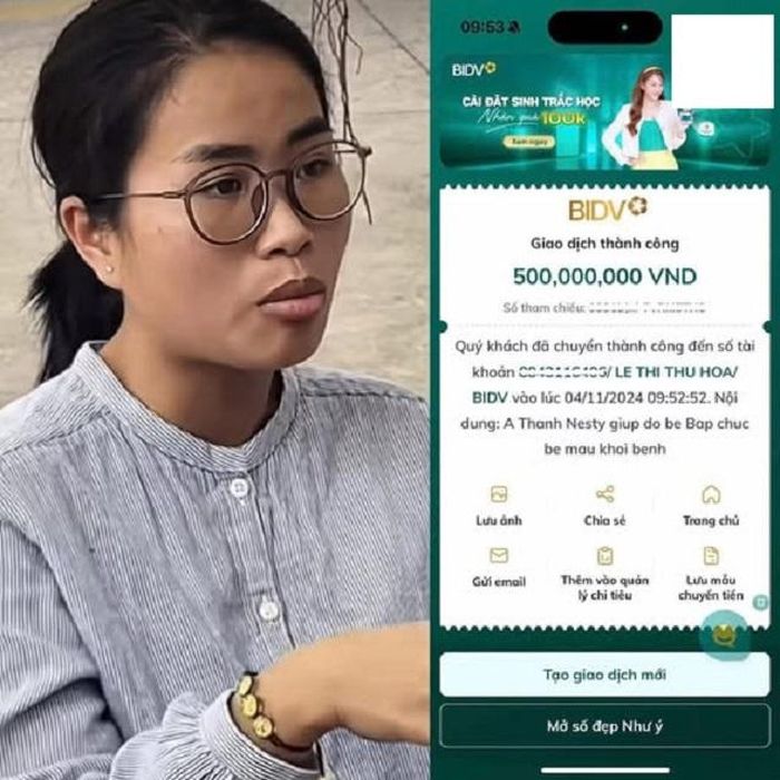Cụ thể, một mạnh thường quân từng ủng hộ 500 triệu cho hành trình chữa ung thư máu của bé Bắp mới đây đã tung hóa đơn chuyển khoản online. Đáng nói, người này chuyển vào số tài khoản BIDV Lê Thị Thanh Hòa trong khi trước đó, mẹ Bắp khẳng định chỉ có hai tài khoản nhận tiền từ thiện của ngân hàng MB và Techcombank. Nói cách khác, mẹ Bắp có ít nhất 3 tài khoản cá nhân nhận tiền từ thiện, do đó việc chỉ sao kê 2 tài khoản MB và Techcombank là chưa đầy đủ và chính xác.