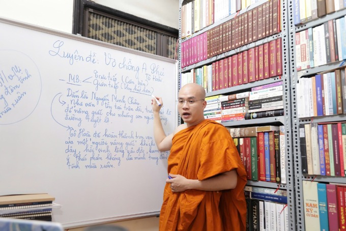 "Tôi thích câu nói của John Cotton Dana, nhà văn hóa lớn của Mỹ, rằng 'người dám dạy phải là người không bao giờ ngừng học'. Tôi tích lũy kiến thức đến khi đủ tự tin mới dạy", nhà sư chia sẻ.