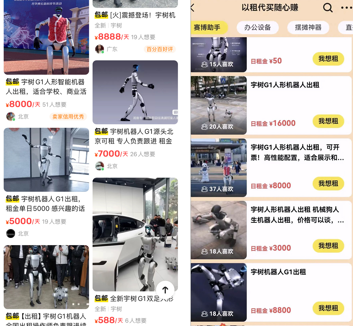 Quảng cáo cho thuê robot ngập tràn trên các chợ điện tử tại Trung Quốc. Ảnh: Sixth Tone.