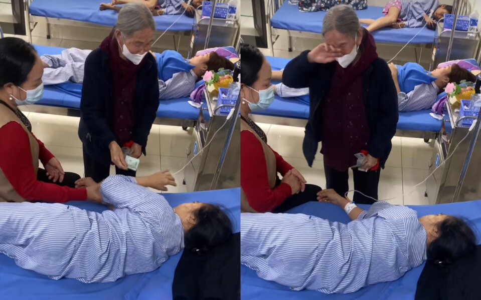 Mạng xã hội lan truyền bức ảnh gây xúc động mạnh: một cụ bà hơn 90 tuổi đến bệnh viện thăm hai con gái của mình – một người 50 tuổi và một người 70 tuổi, không may gặp tai nạn. Hình ảnh cụ bà nghẹn ngào đưa tiền cho con, không cầm được nước mắt, đã khiến nhiều người không khỏi xót xa.