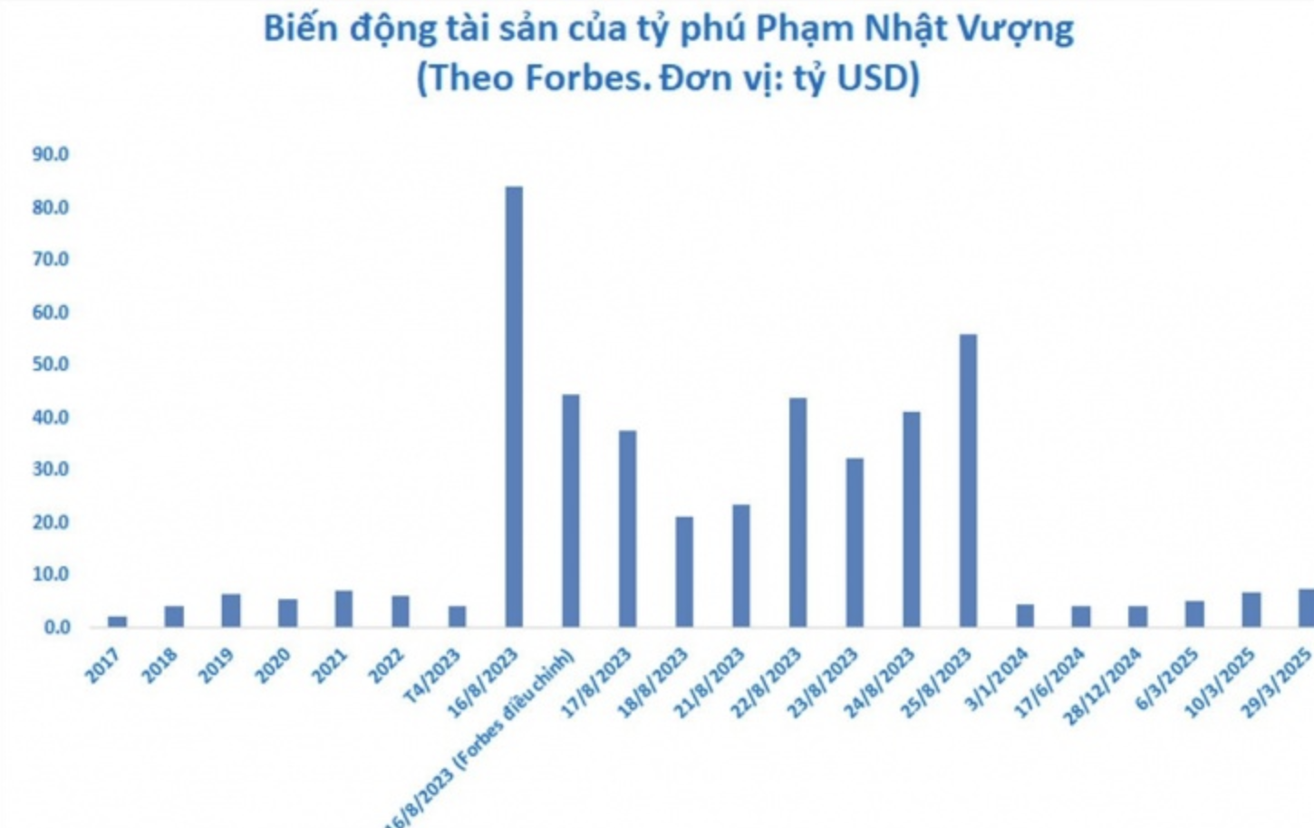 Biến động tài sản của ông Phạm Nhật Vượng. Biều đồ: MH