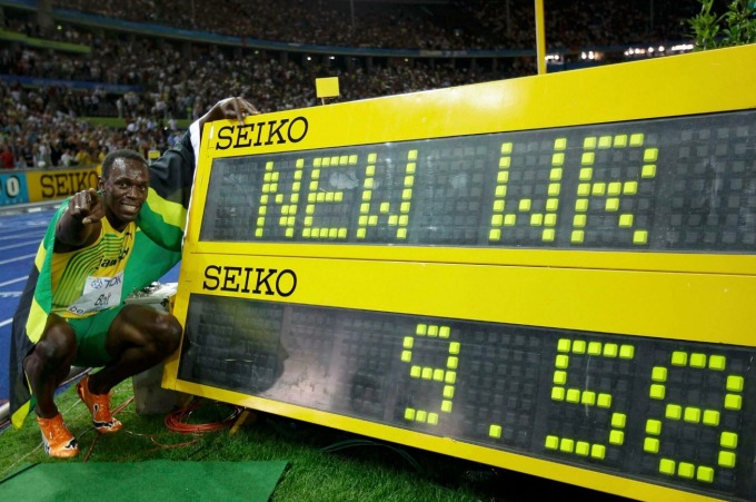 Ở cự ly 100m nam, Bolt đang giữ cả kỷ lục thế giới lẫn kỷ lục Olympic. Huyền thoại người Jamaica lập kỷ lục thế giới vào tháng 8/2009 tại Berlin với thành tích 9 giây 58, và lập kỷ lục Olympic tại London 2012 với thành tích 9 giây 63. Ngoài ra, anh hiện còn giữ kỷ lục thế giới ở nội dung 200m với 19 giây 19 tại Berlin 2009.