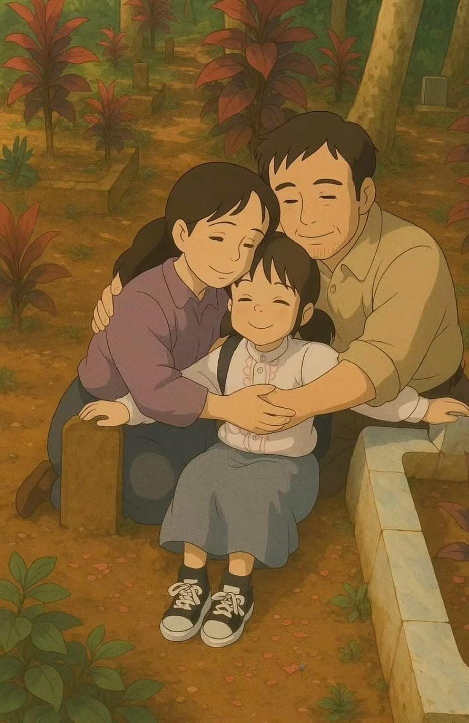 Trong ảnh là một cô bé được cho là người Indonesia lặng lẽ ngồi bên hai ngôi mộ – nơi yên nghỉ của cha và mẹ cô. Nhưng điều khiến bức ảnh trở nên đặc biệt không nằm ở khoảnh khắc ấy, mà là một sự thay đổi nhỏ mà cô bé đã làm: cô đã dùng trí tuệ nhân tạo (AI) để chỉnh sửa lại bức hình – đưa hình ảnh cha mẹ trở về bên cạnh mình, như thể họ chưa bao giờ rời xa.