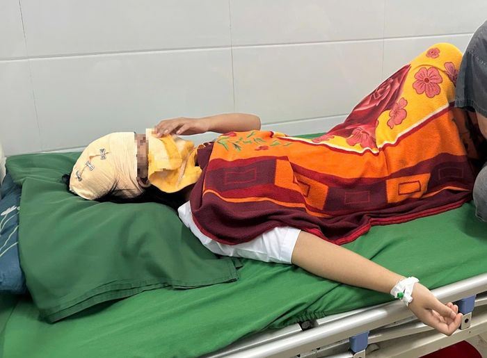 Nạn nhân thứ hai, em N.N.H.Tr hiện đang điều trị tại Bệnh viện Đa khoa TP Vinh với vết thương hở ở đầu dài gần 10cm, mất nhiều máu, choáng nặng. Tr. đã tỉnh nhưng vẫn chưa thể trò chuyện.