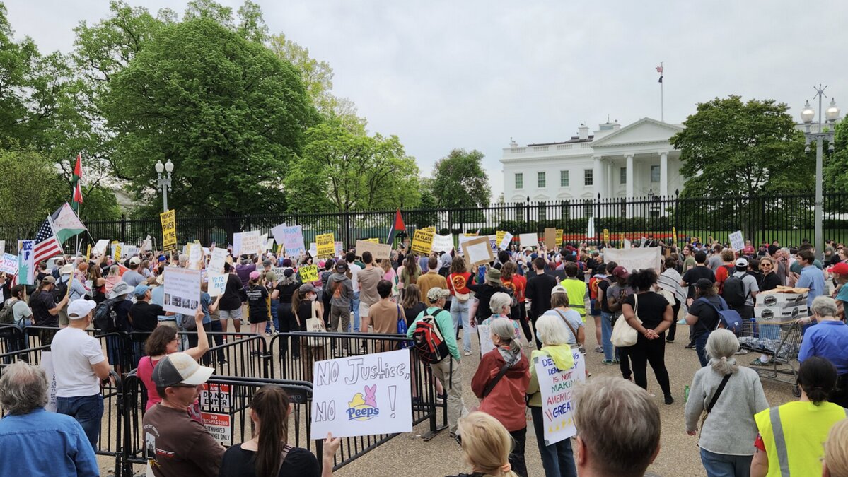Biểu tình tại Lafayette Square trước Tòa Bạch Ốc ngày 19 Tháng Tư. (Hình: Trúc Phương/Người Việt)