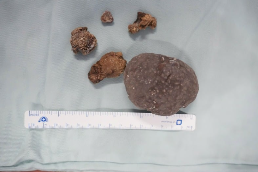 Hình ảnh sỏi thận lớn lấy ra từ thận trái. Ảnh BVCC