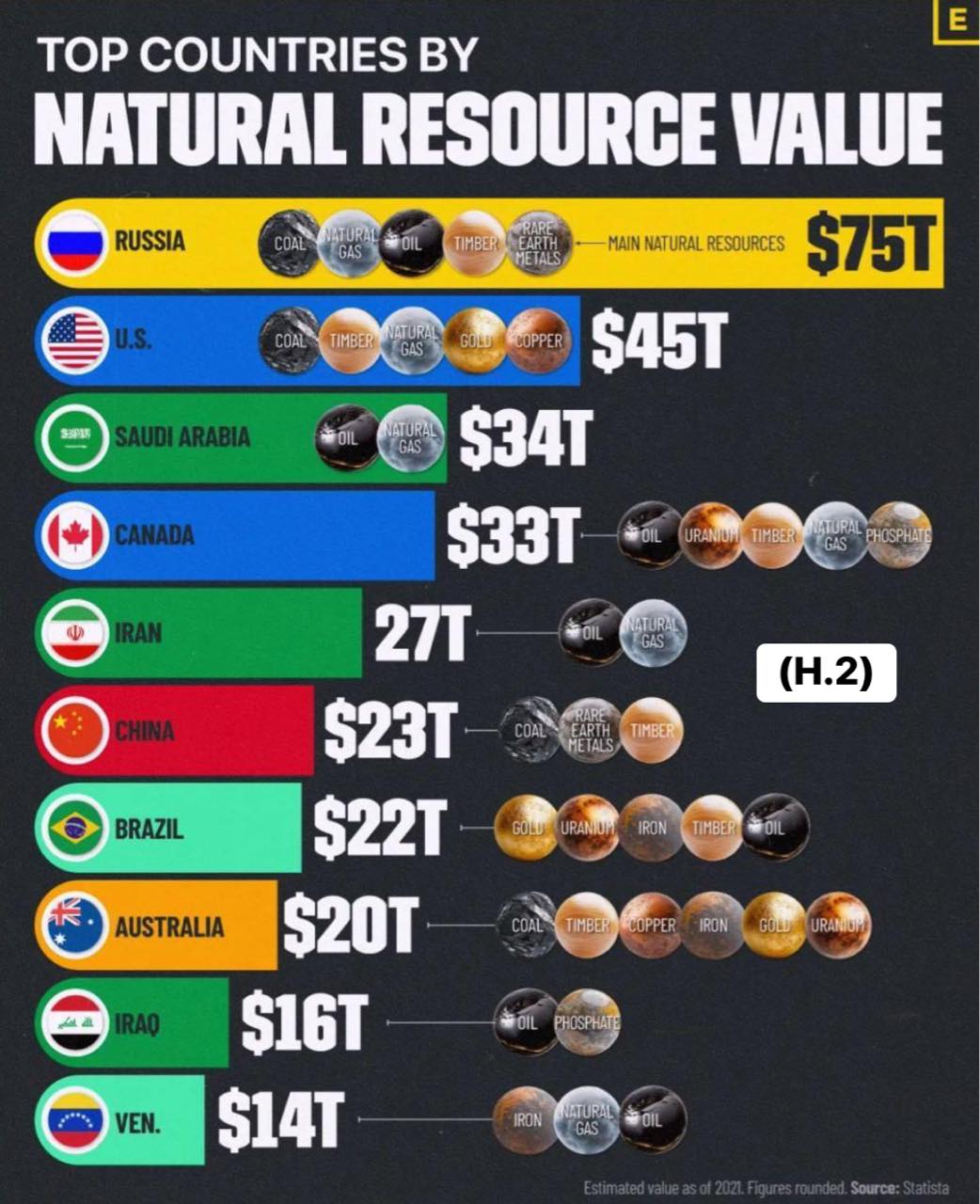 Hộ gia đ́nh Mỹ nắm giữ trên $150 ngàn tỷ [3]. Tài nguyên thiên nhiên khoảng trên $45 ngàn tỷ (H.2) => Tổng tài sản doanh nghiệp nước Mỹ khoảng $200 ngàn tỷ.