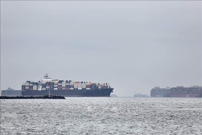 Tàu chở hàng neo tại cảng ở Los Angeles, California, Mỹ. Ảnh: THX/TTXVN