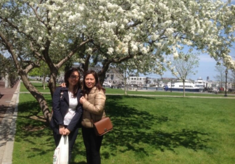 Boston thuộc bang Mussachusset có trường đại học Harvard nổi tiếng. Boston cũng không thiếu những ṭa nhà chọc trời nằm xen lẫn những ngôi nhà cổ kính được bảo tồn kỹ lưỡng. Khắp bờ Đông nước Mỹ đang ngập tràn màu xanh non của cây cối. Mùa này hoa anh đào cũng đang rực rỡ. Màu hồng phớt như má người thiếu nữ hút hồn du khách.