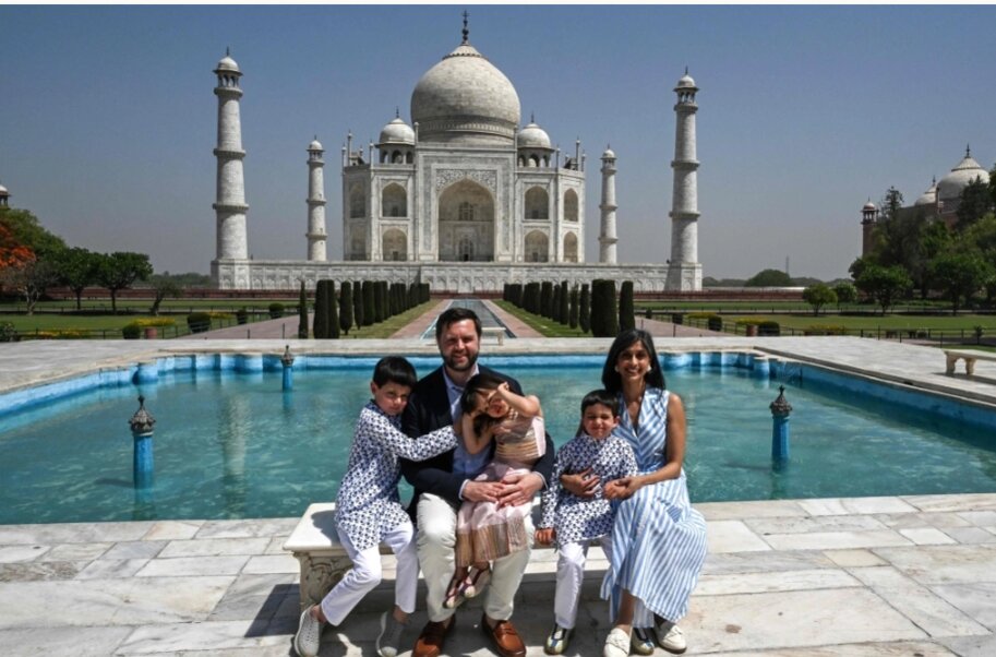 Gia đình Phó tổng thống Mỹ trong chuyến công du Ấn Độ hồi tháng 4. Ảnh: AFP