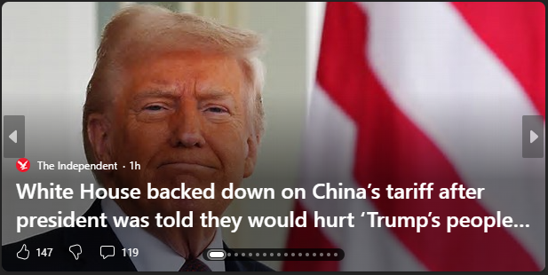 Trong khi Trump miễn cưỡng hạ thuế quan đối với Bắc Kinh quá nhanh, một số nhân viên Nhà Trắng - bao gồm Chánh văn phòng Susie Wiles, Bộ trưởng Tài chính Scott Bessent và các trợ lý khác - đã cảnh báo ông rằng các hình phạt đang đặt những người ủng hộ ông vào tình thế nguy hiểm, các nguồn tin cho biết với tờ Washington Post.