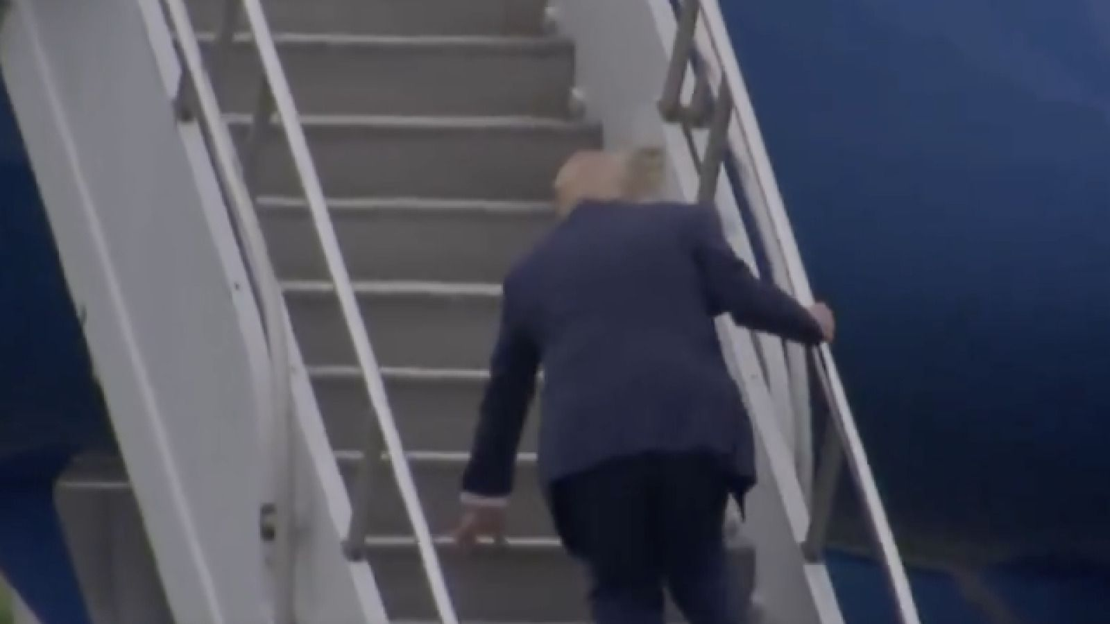 Tổng thống Trump trượt chân khi đi lên cầu thang của Không lực Một