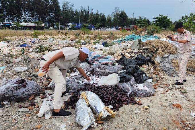 Lực lượng chức năng ghi nhận số thuốc vứt ra bãi rác tự phát. Ảnh: Ngọc Trường