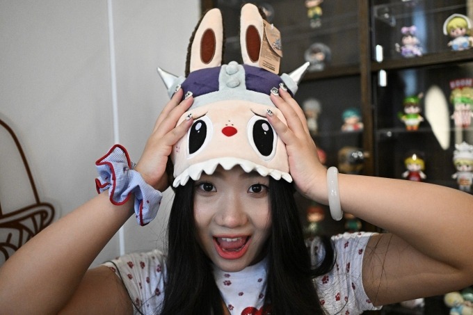 Cô gái đội chiếc mũ hình Labubu khi tham quan công viên giải trí Pop Land của Pop Mart tại Bắc Kinh ngày 18/6. Ảnh: AFP