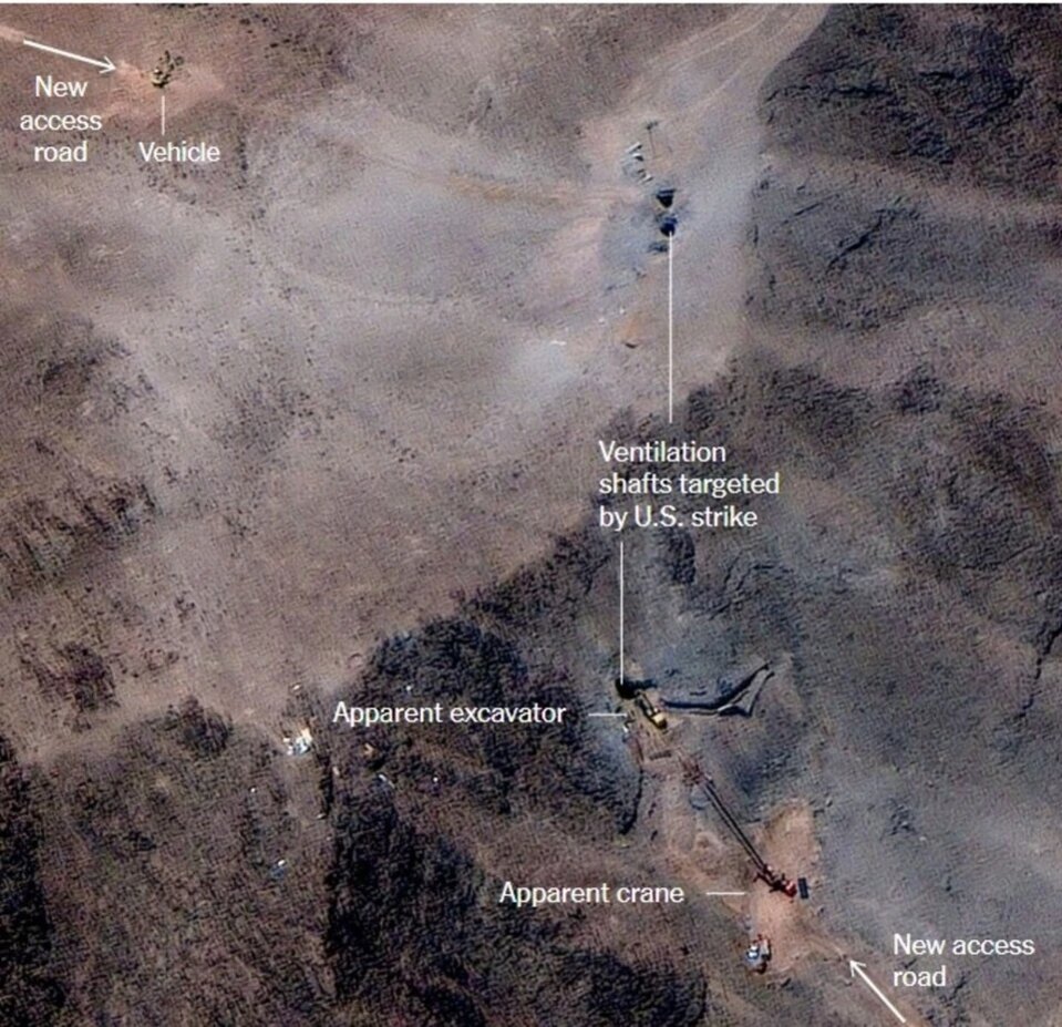 Theo New York Times, những bức ảnh từ vệ tinh được chụp vài ngày sau cuộc không kích của Mỹ cho thấy cơ sở hạt nhân Fordo vẫn có nhiều hoạt động xảy ra. Nơi này vốn được cho xây dựng thật kiên cố nằm sâu trong lòng núi để bảo vệ trước các đòn tấn công xảy ra, nếu có.