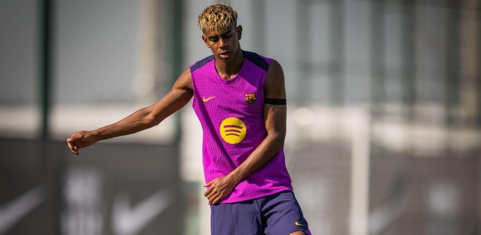 Yamal trên sân tập Barca hôm 15/7. Ảnh: MD