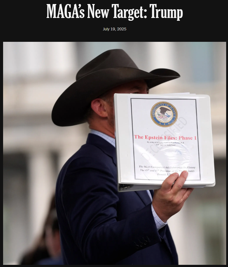 Những người ủng hộ Trump nghĩ rằng ông ta sẽ làm sáng tỏ những kẻ tinh hoa mờ ám đang bảo vệ tiền bạc và quyền lực của chính họ. Giờ đây, MAGA đang phải đối mặt với sự thật rằng Trump chính là kẻ tinh hoa mờ ám, che giấu thông tin về Jeffrey Epstein.