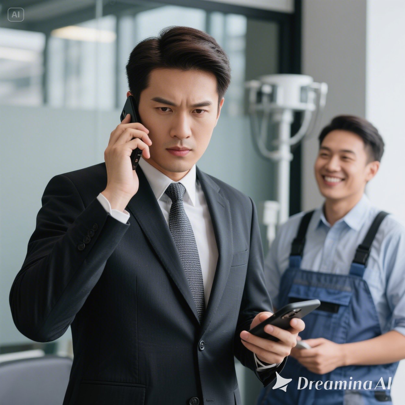 Một luật sư trẻ mới hành nghề, muốn tạo ấn tượng với khách hàng đầu tiên. Khi có người gõ cửa, anh ta lập tức nhấc điện thoại lên và nói thật to: