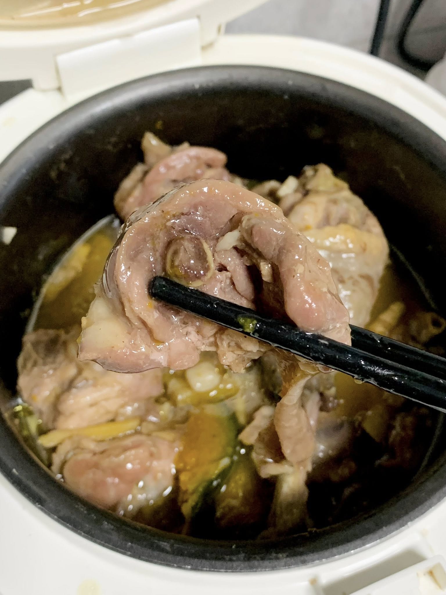 Gà mềm mọng nước. Rau củ có sẵn nước nên khi hấp xong thì sẽ có canh trong nồi