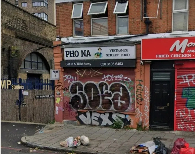 Nhà hàng Pho Na trên đường Old Kent, Southwark, London đóng cửa sau khi bị thanh tra. Ảnh: Sun